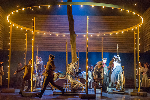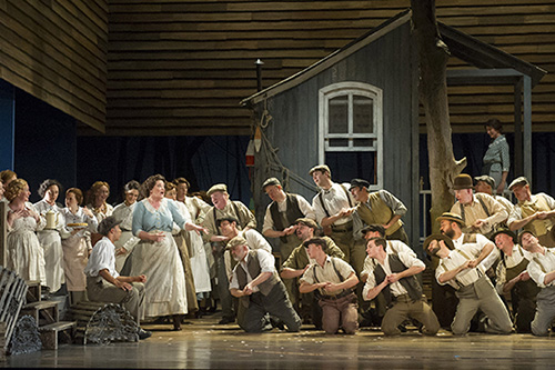 Keith Higham as Billy Bigelow and Gillene Butterfield as Julie Jordan (right) with the chorus and dancers