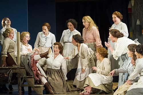 Yvonne Howard as Nettie Fowler (blue dress) with the chorus and dancers
