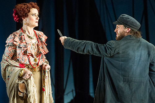 Joseph Shovelton as Enoch Snow and Aoife O’Sullivan as Carrie Pipperidge